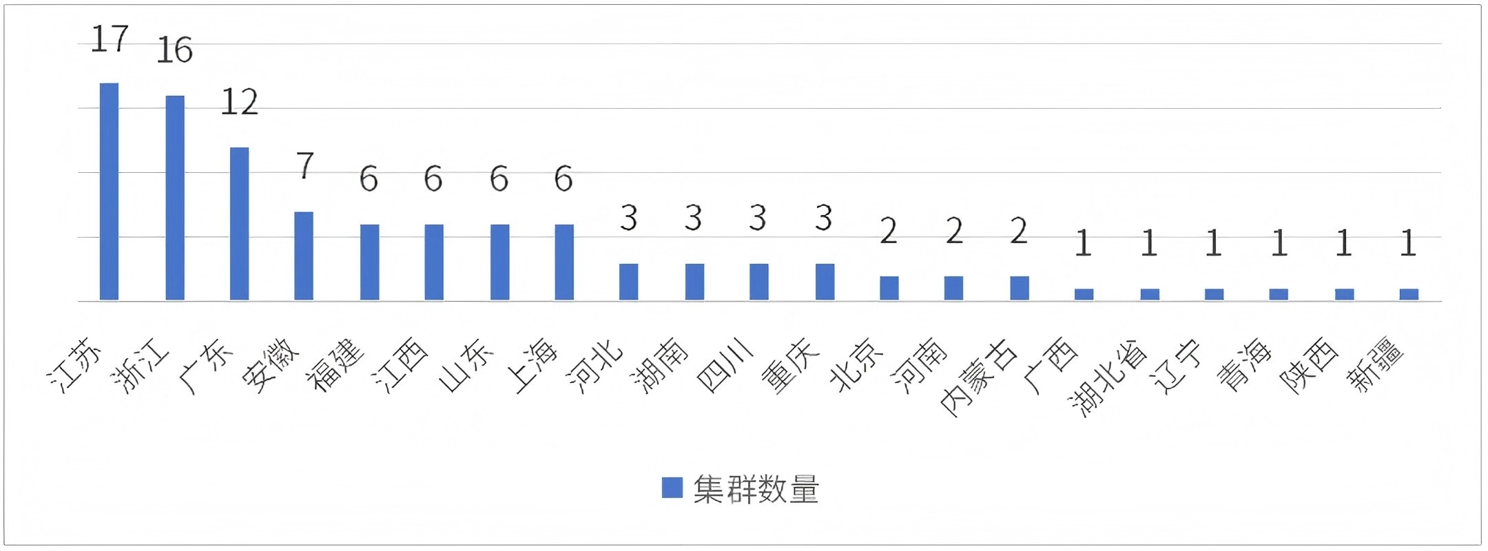 圖1?2024年中國民營經濟百強產業集群分布情況