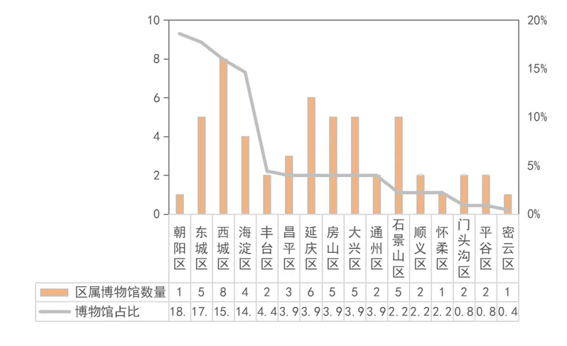 區屬博物館形成“核心集聚、外圍開花”的空間格局。超五成區屬博物館集中在西城區、延慶區、東城區、石景山區、房山區和大興區六個區。其中,西城區、東城區作為北京博物館高度集聚的“核心區”,分別坐擁8家、5家區屬博物館。在城市外圍,延慶區、房山區和大興區等區域分別擁有6家、5家和5家區屬博物館,博物館建設正在從中心向周邊蓬勃發展,形成了“多點開花”的空間布局。